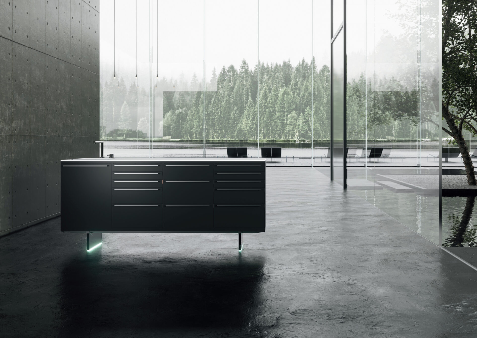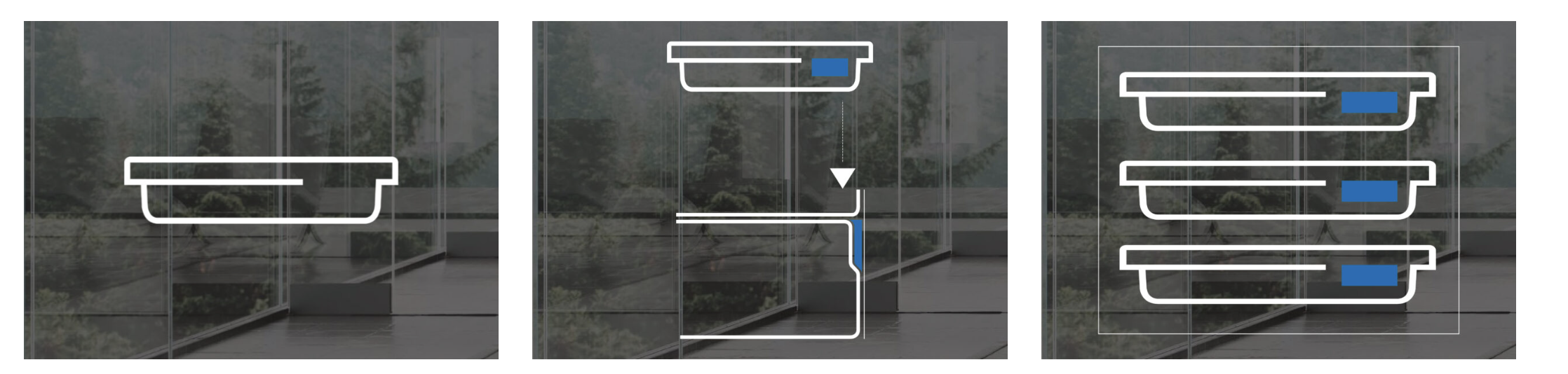 - Sistema de almacenamiento optimizado, con cajoneras de cierre amortiguado y estanterías de fácil acceso.