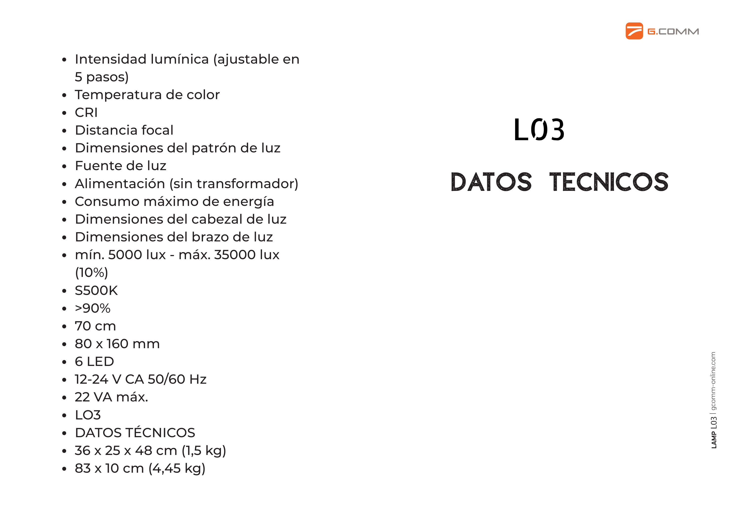 - Intensidad lumínica de 35.000 Lux, asegurando una visión clara y sin reflejos.