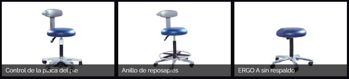 El Taburete ERGO A es ideal para odontólogos, fisioterapeutas y médicos que requieren un soporte lumbar ajustable en su taburete.