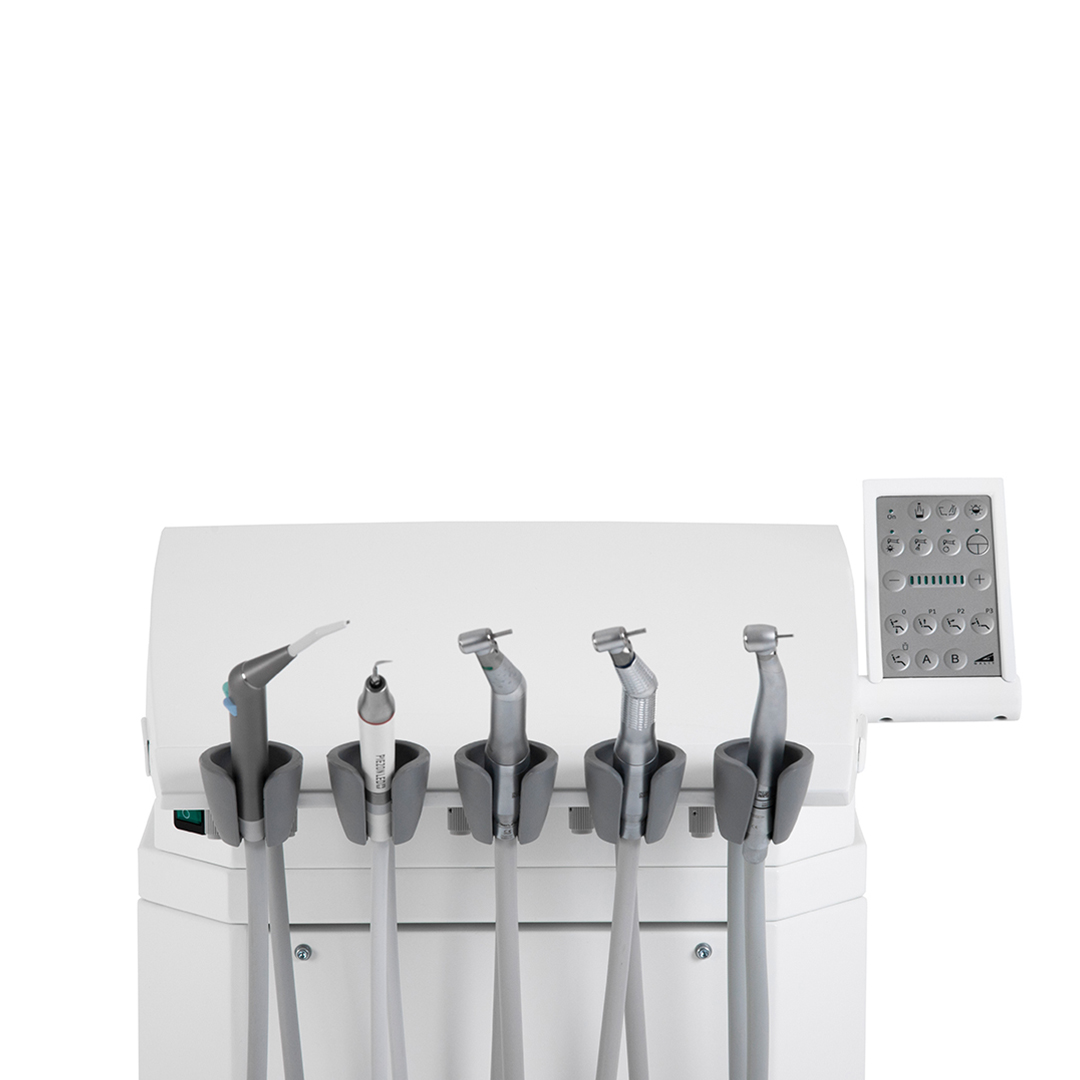 • Sin tuberías para traer líneas de servicio. Los dispositivos autónomos móviles se pueden mover fácilmente entre salas de tratamiento o clínicas, si las circunstancias lo requieren.